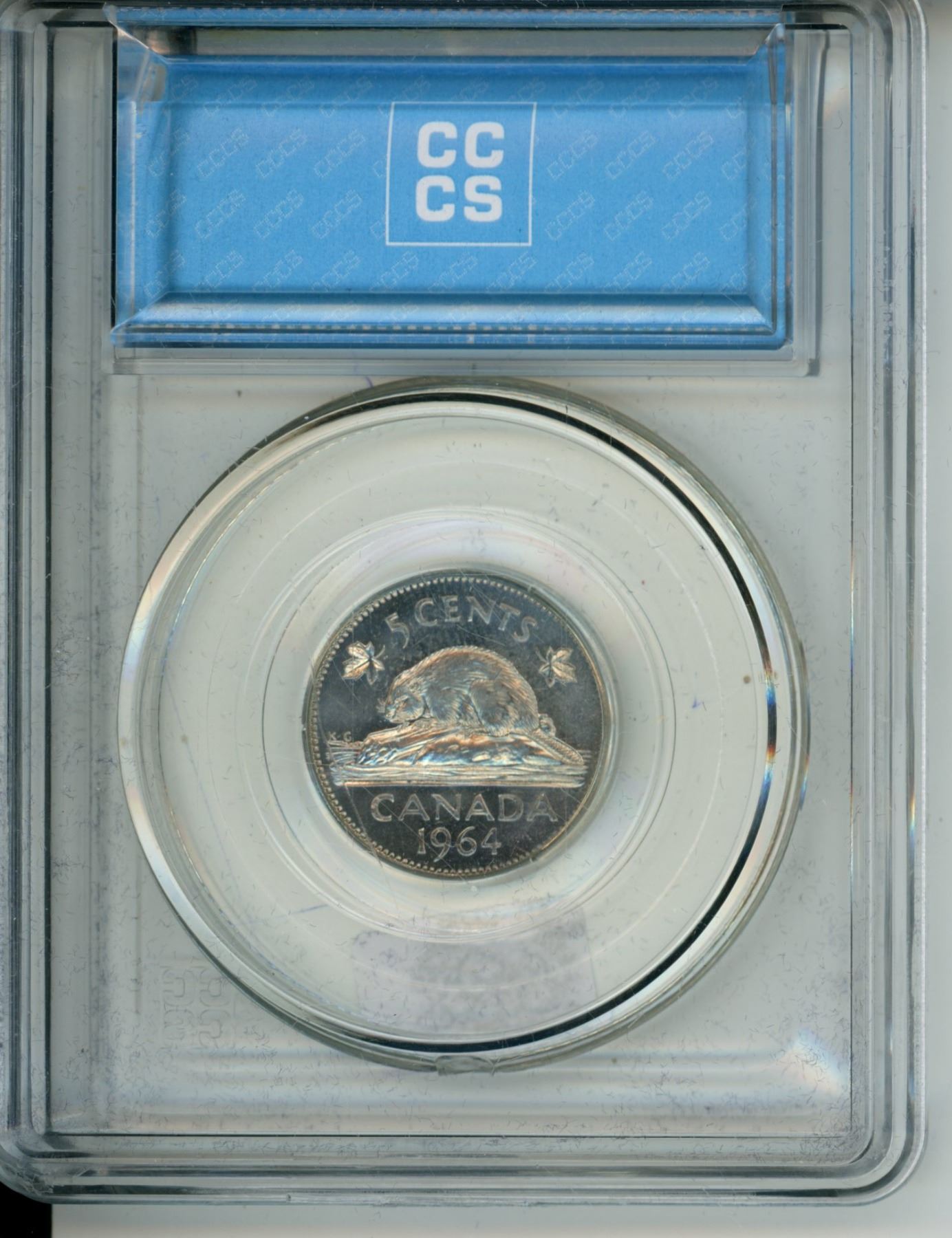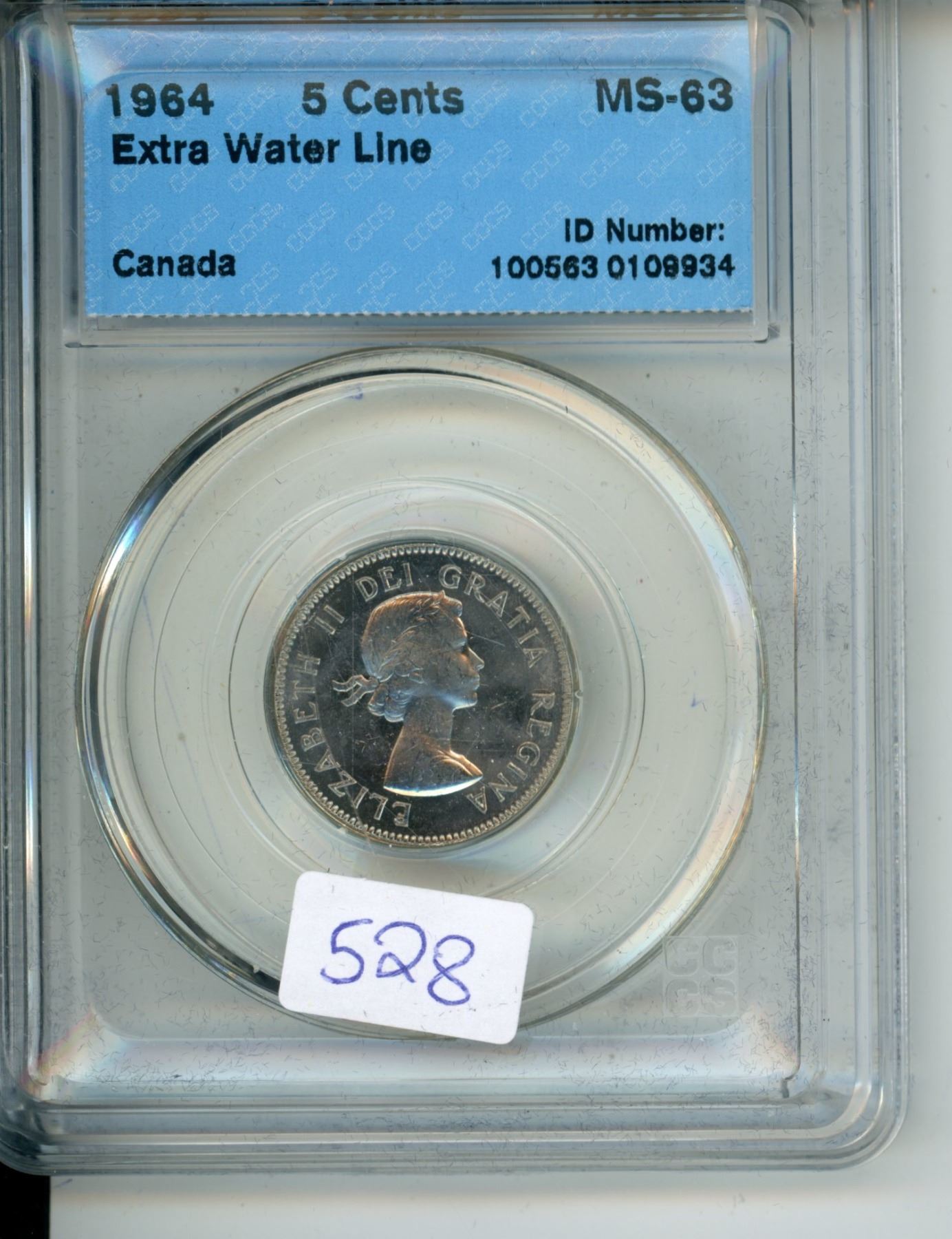 1964 Canadian CCCS Graded 5 Cent Coin - MS-63, Extra Water Line