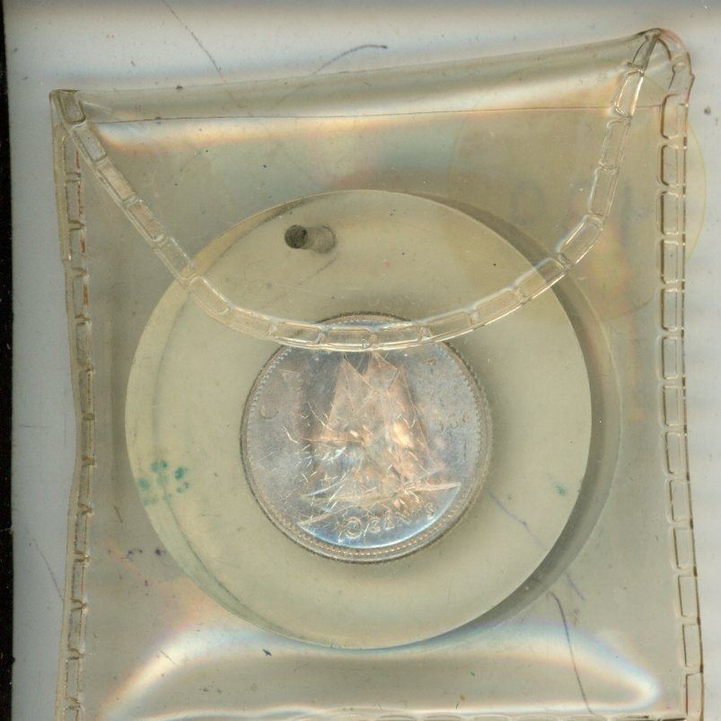 1964 Canadian Silver 10 Cents. Encased in acrylic and could be used as a Key Chain.