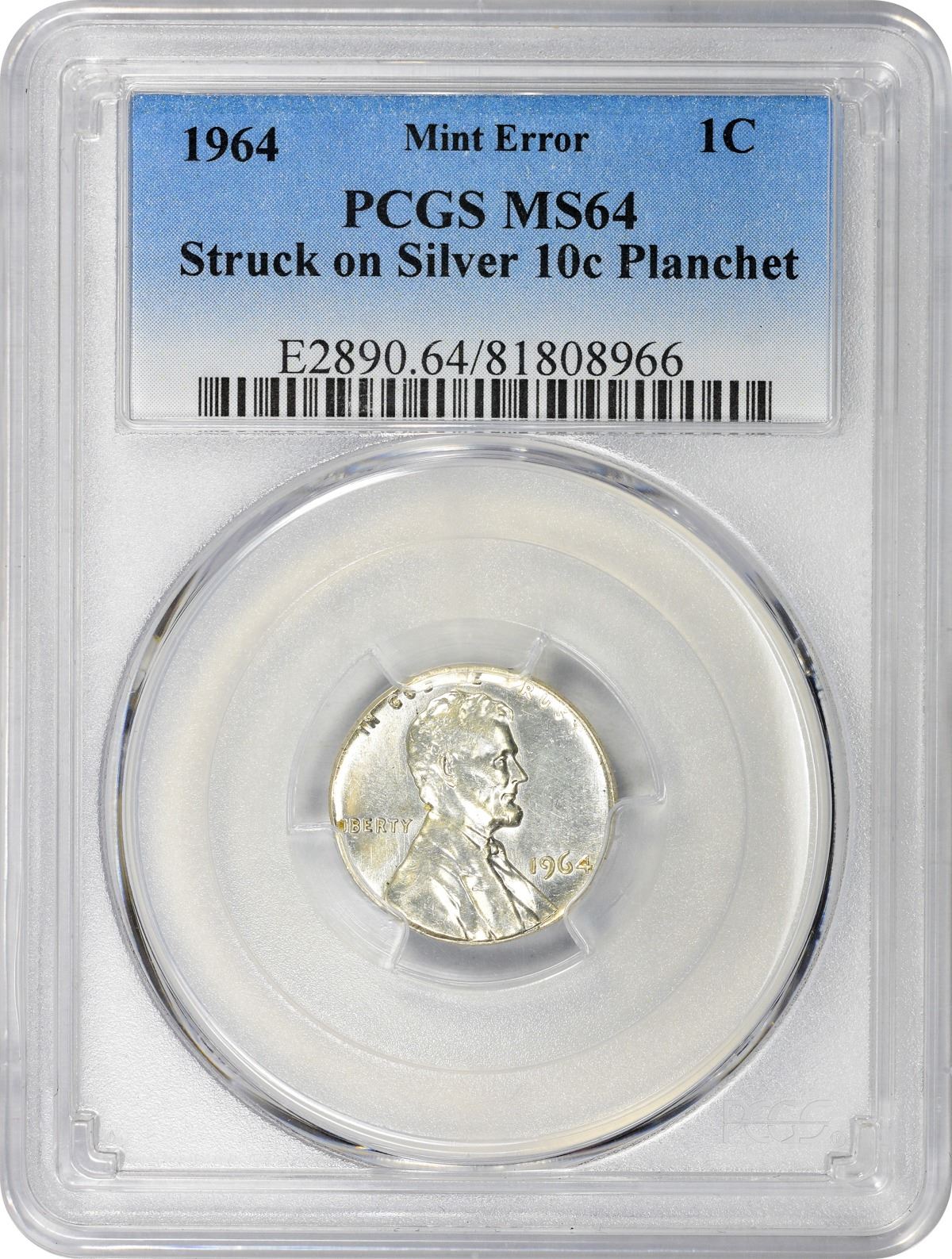 Fully brilliant and boldly lustrous. Yet another cent dies-dime planchet error, one of several of this popular variety offered here; perhaps one bidder will take home all the different dates offered! PCGS #E2890