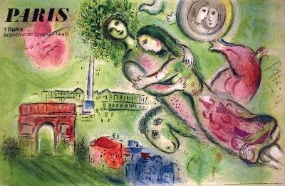 Reference #: ULAW1724-D Artist Name: Chagall, Marc Title: Romeo and Juliette Medium: Lithograph Edition Size: 5000 Year: 1964 Paper Size: 25 x 38.5 inches Image Size: 25 x 38.5 inches Condition: A: Mint Notes: Original advertising poster printed for the Office of French Tourism. Taken from a detail of the Ceiling of the Opera. This fragment is a tribute to Berlioz for Romeo and Juliette. It also includes pictures of the Place de la Concorde and the Arc de Triomphe. Published by the French Tourism Bureau, reference page #96 in ëChagall's Posters - A Cataloque Raisonne', Sorlier, 1975 and printed by Mourlot.