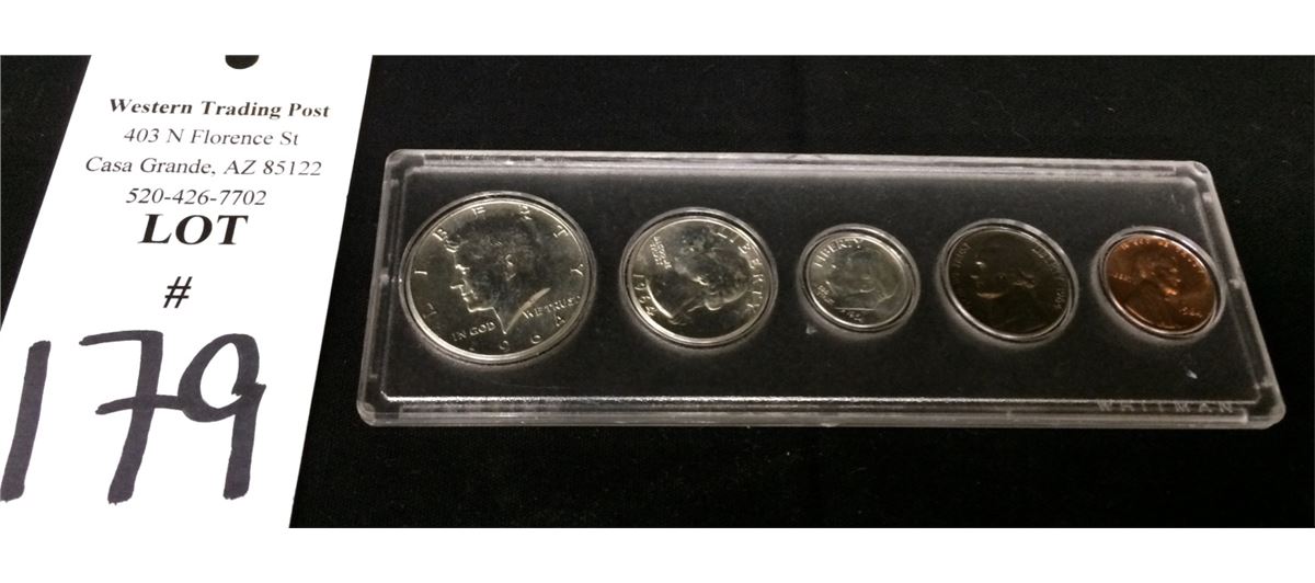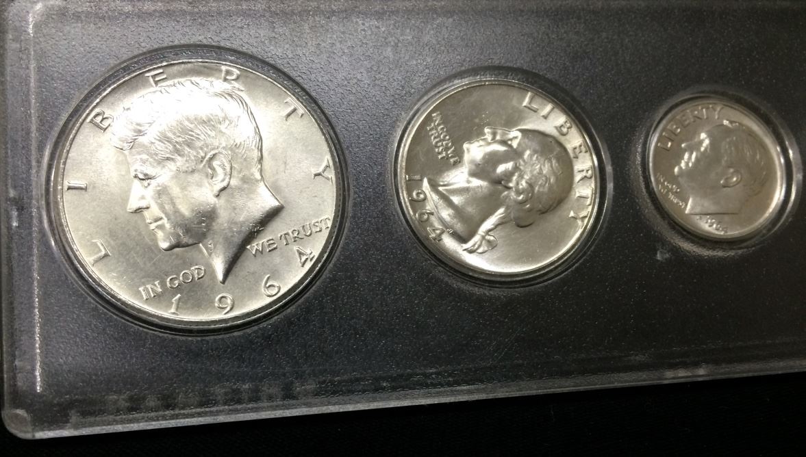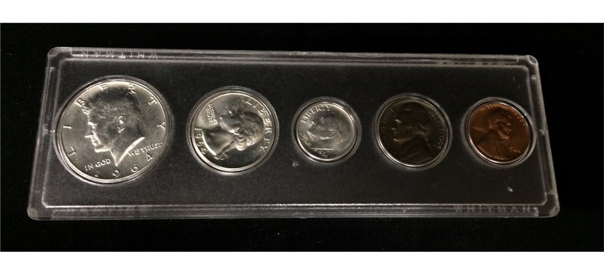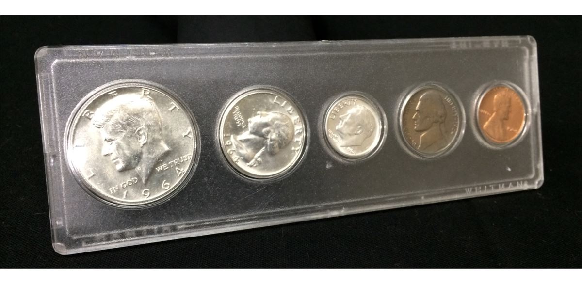 1964 was the last year we had silver coins (other than special commemorative editions). This is an uncirculated proof set, all from 1964 and the dime, quarter and half dollar all will be coin silver (.900 silver). Shipping: There will be a $5 handling / packaging fee for shipping this lot. The actual cost of postage will be added on top of that.