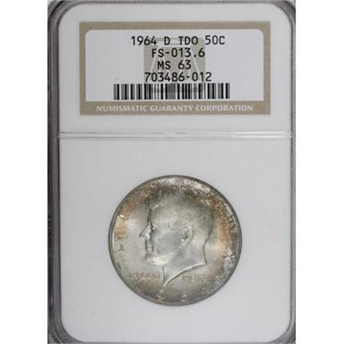 <B>1964-D 50C MS63 NGC.</B></I> Triple Die Obverse, FS-013.6. NGC Census: (79/431). PCGS Population (105/1164). Mintage: 156,205,440. Numismedia Wsl. Price for NGC/PCGS coin in MS63: $5.65. (#6707)<BR><BR><B>Coin Engraver:</B> Gilroy Roberts and Frank Gasparro<BR><BR><b>Shipping:</b> Coins & Currency (<a target="_blank" href="http://www.heritageauctions.com/common/shipping.php">view shipping information</a>)