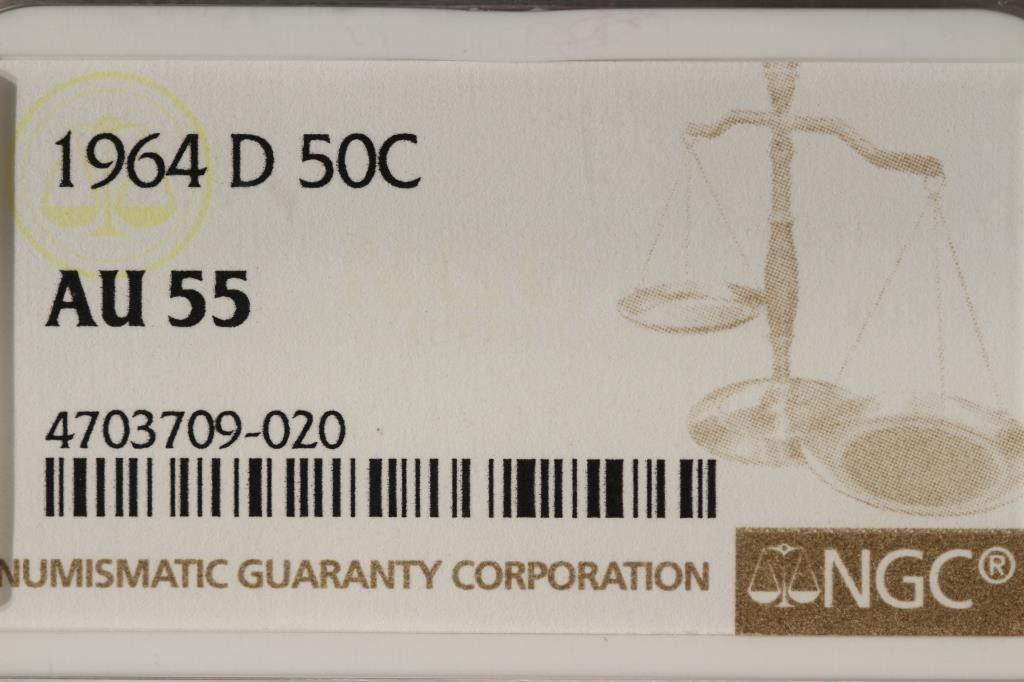 1964-D 90% SILVER KENNEDY HALF DOLLAR NGC AU55