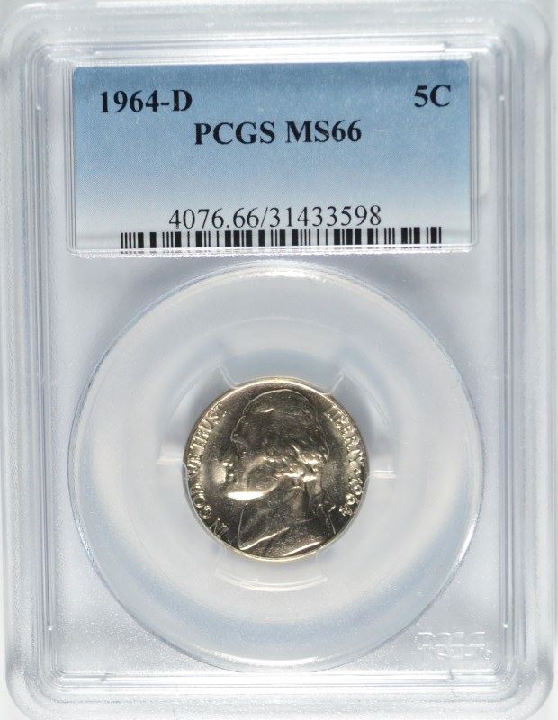 1964-D JEFFERSON NICKEL, PCGS MS-66 TOP POP., NONE HIGHER!