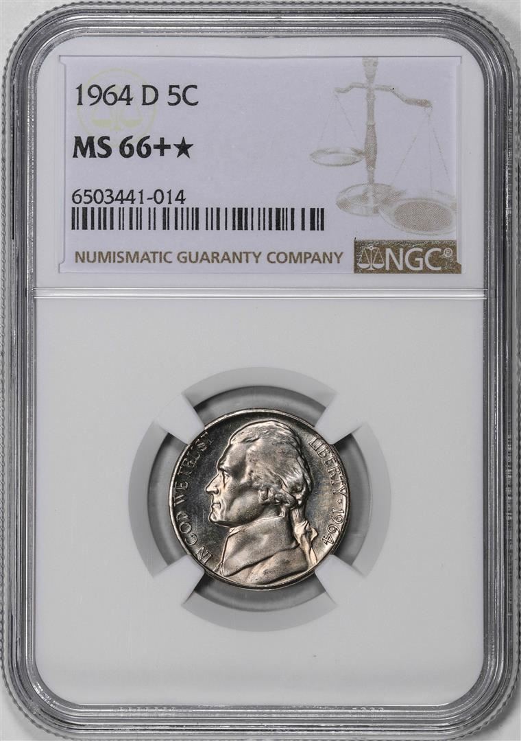One 1964-D Jefferson Nickel Coin NGC MS66+* Star. NGC Certified.