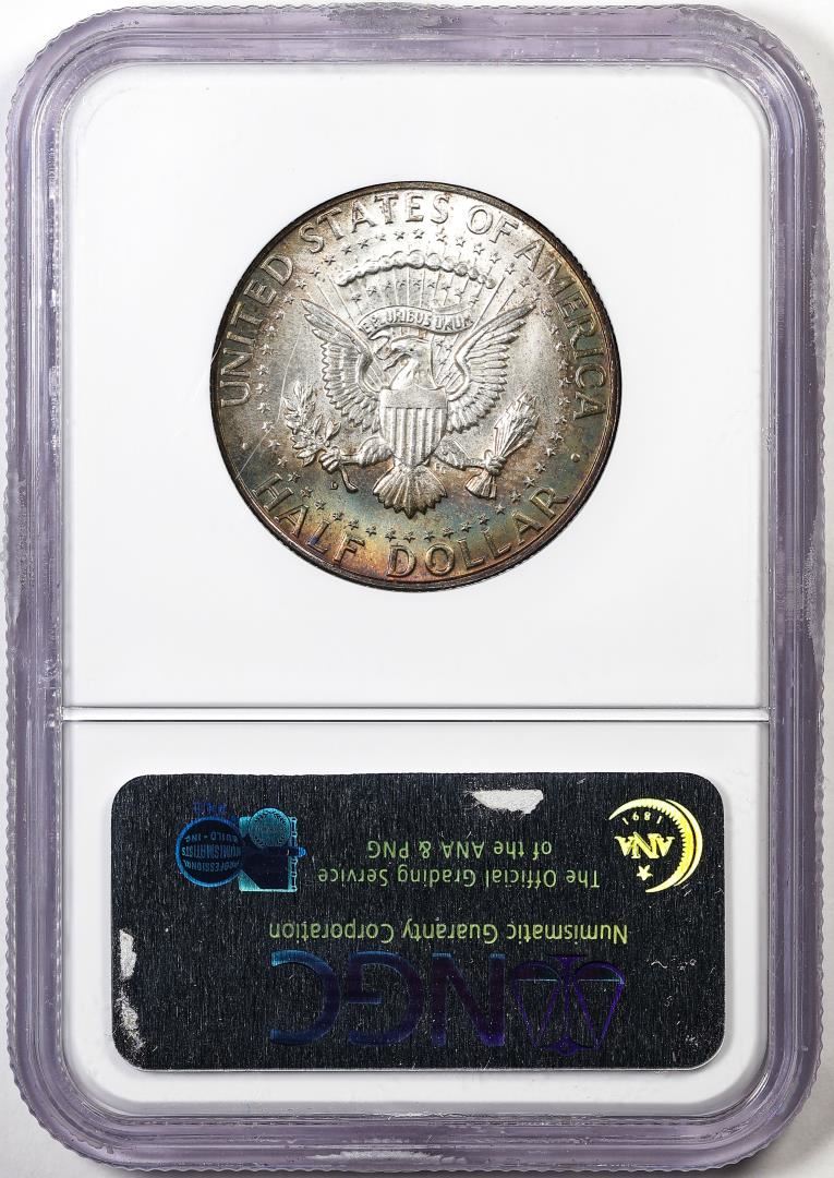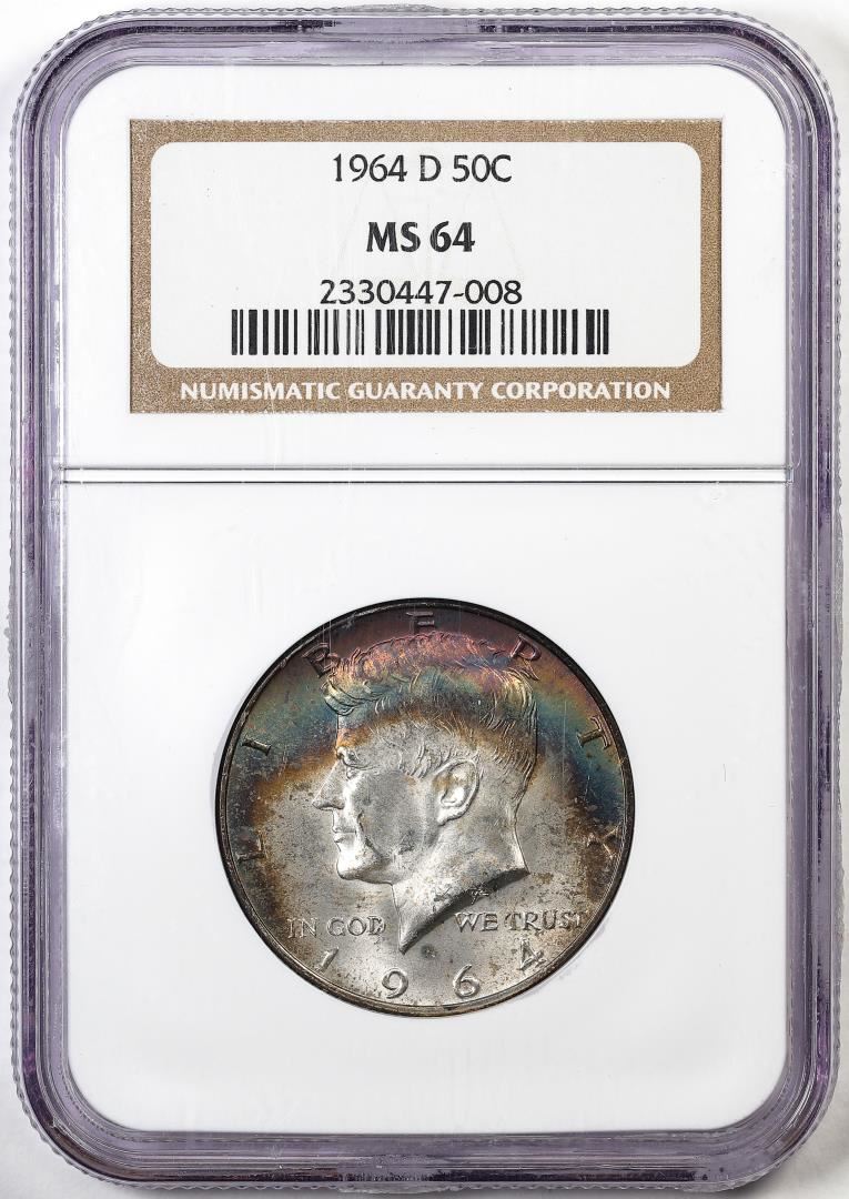 One 1964-D Kennedy Half Dollar Coin NGC MS64 Amazing Toning. NGC Certified.