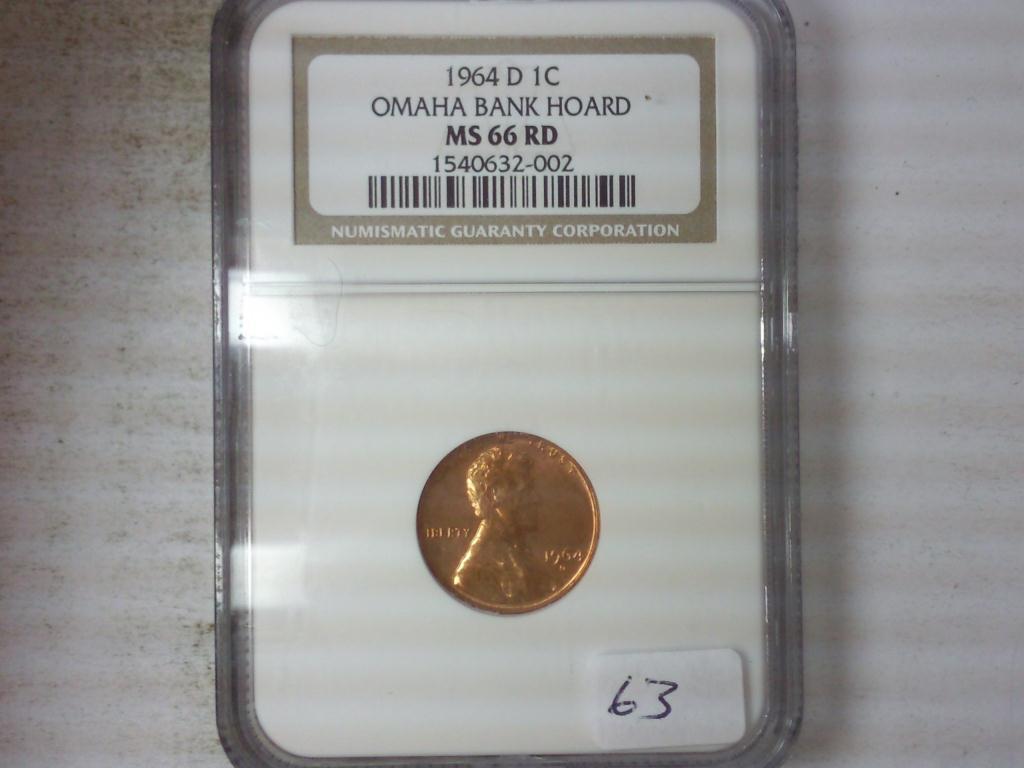 1964-D LINCOLN CENT OMAHA BANK HOARD NGC MS66RD