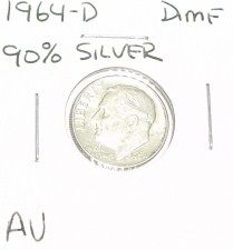 1964-D ROOSEVELT SILVER DIME *RARE AU HIGH GRADE*!! ***Coin, Currency & All Items Listed in this auction - Grades, Conditions and Values are not Safe Deposit Coins LLC Responsibilty. Grades, Condition and Values are determined by Consigner(s) & Buyers.