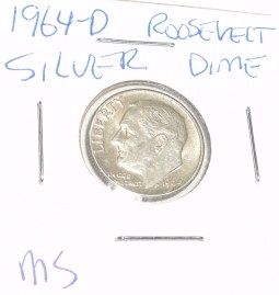 1964-D ROOSEVELT SILVER DIME *RARE MS HIGH GRADE*!! ***Coin, Currency & All Items Listed in this auction - Grades, Conditions and Values are not Safe Deposit Coins LLC Responsibilty. Grades, Condition and Values are determined by Consigner(s) & Buyers ONLY***