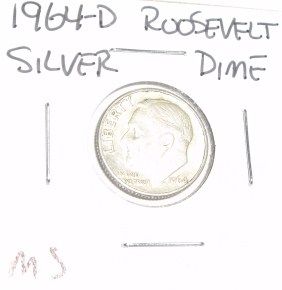 1964-D ROOSEVELT SILVER DIME *RARE MS HIGH GRADE*!! ***Coin, Currency & All Items Listed in this auction - Grades, Conditions and Values are not Safe Deposit Coins LLC Responsibilty. Grades, Condition and Values are determined by Consigner(s) & Buyers ONLY***