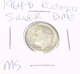 1964-D ROOSEVELT SILVER DIME *RARE MS HIGH GRADE*!! ***Coin, Currency & All Items Listed in this auction - Grades, Conditions and Values are not Safe Deposit Coins LLC Responsibilty. Grades, Condition and Values are determined by Consigner(s) & Buyers ONLY***