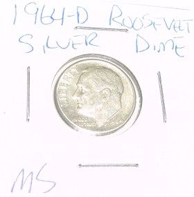 1964-D ROOSEVELT SILVER DIME *RARE MS HIGH GRADE*!! ***Coin, Currency & All Items Listed in this auction - Grades, Conditions and Values are not Safe Deposit Coins LLC Responsibilty. Grades, Condition and Values are determined by Consigner(s) & Buyers ONLY***
