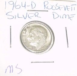 1964-D ROOSEVELT SILVER DIME *RARE MS HIGH GRADE*!! ***Coin, Currency & All Items Listed in this auction - Grades, Conditions and Values are not Safe Deposit Coins LLC Responsibilty. Grades, Condition and Values are determined by Consigner(s) & Buyers ONLY***