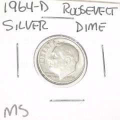 1964-D ROOSEVELT SILVER DIME *RARE MS HIGH GRADE*!! ***Coin, Currency & All Items Listed in this auction - Grades, Conditions and Values are not Safe Deposit Coins LLC Responsibilty. Grades, Condition and Values are determined by Consigner(s) & Buyers ONLY***