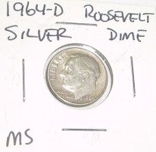 1964-D ROOSEVELT SILVER DIME *RARE MS HIGH GRADE*!! ***Coin, Currency & All Items Listed in this auction - Grades, Conditions and Values are not Safe Deposit Coins LLC Responsibilty. Grades, Condition and Values are determined by Consigner(s) & Buyers ONLY***