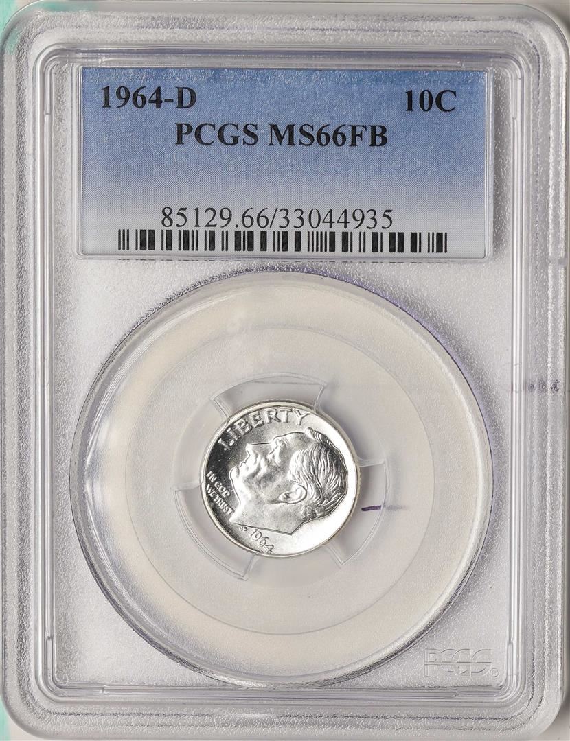 One 1964-D Roosevelt Dime Coin PCGS MS66FB. PCGS Graded.
