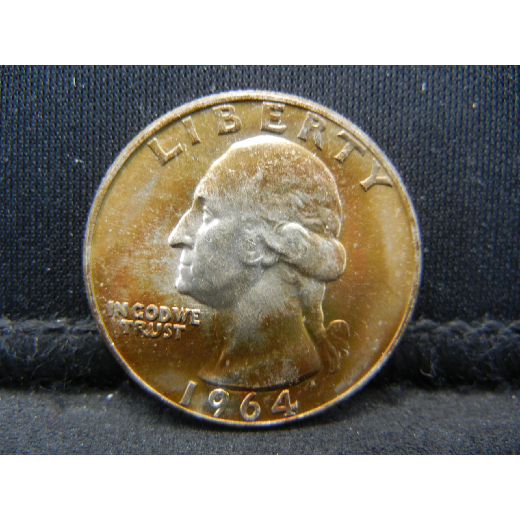 1964 D Silver Washington Quarter Gem BU Coll End of the Roll Toning !!! Nice