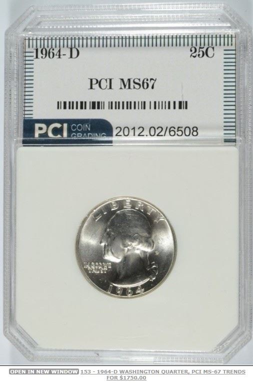 1964-D US Washington Quarter - MS 67!! - PCI MS 67!! - Value: $1750.00(US)