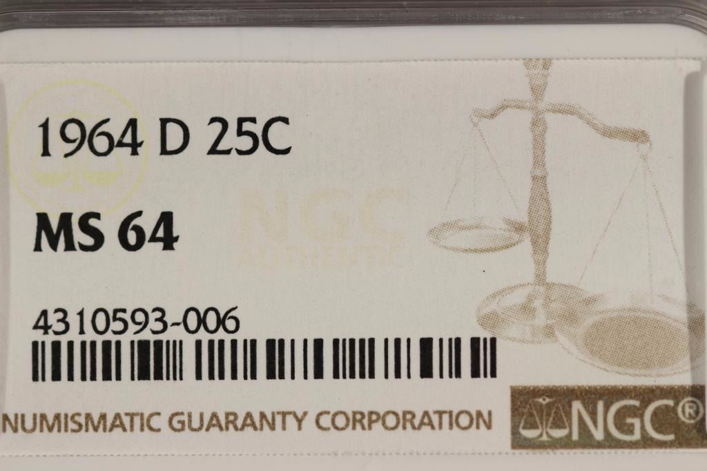 1964-D WASHINGTON SILVER QUARTER NGC MS64