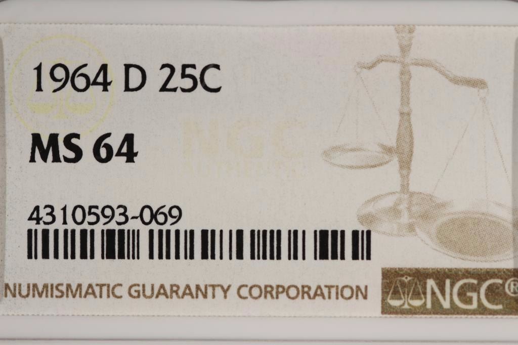 1964-D WASHINGTON SILVER QUARTER NGC MS64