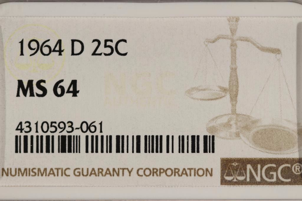1964-D WASHINGTON SILVER QUARTER NGC MS64