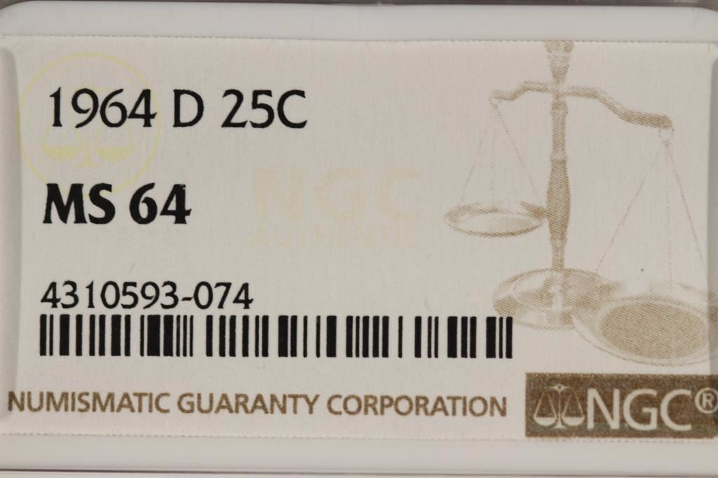 1964-D WASHINGTON SILVER QUARTER NGC MS64