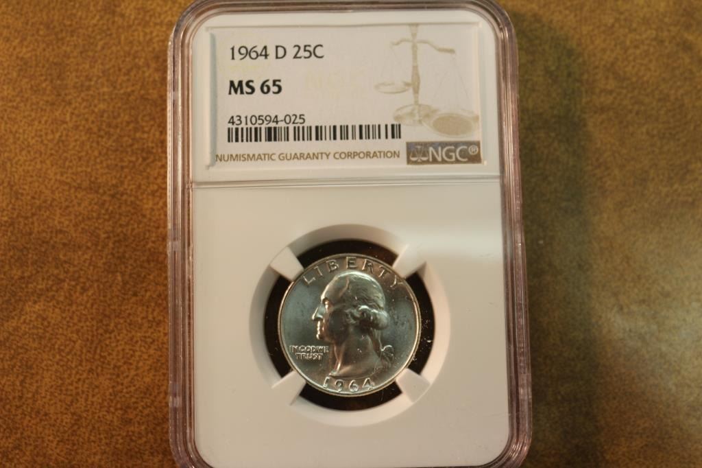1964-D WASHINGTON SILVER QUARTER NGC MS65