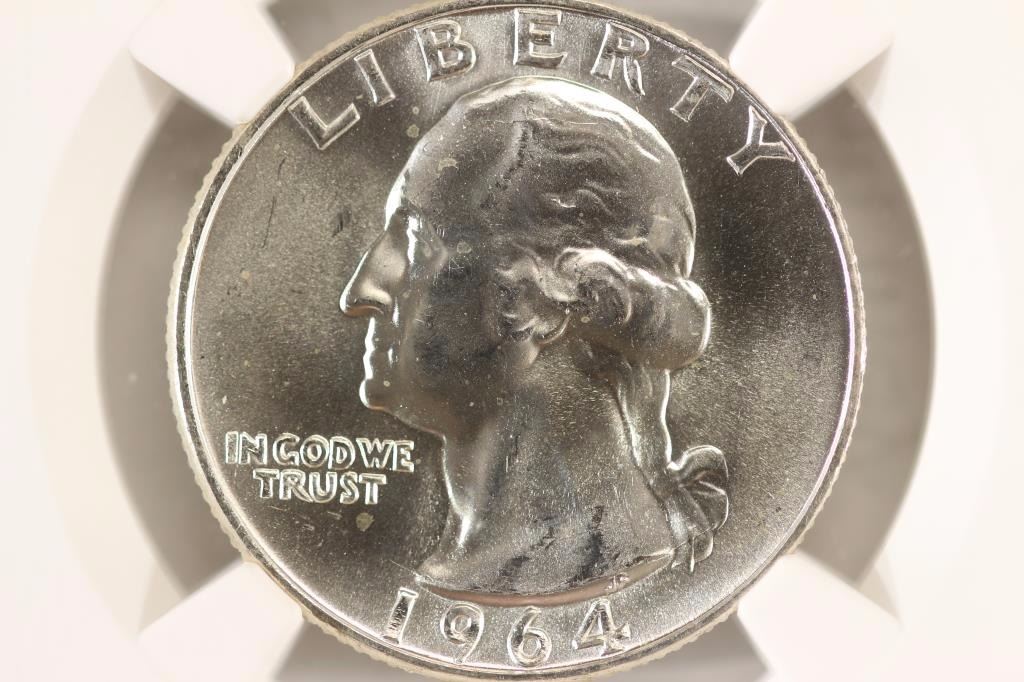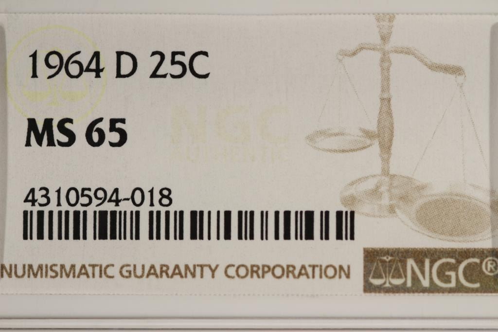 1964-D WASHINGTON SILVER QUARTER NGC MS65