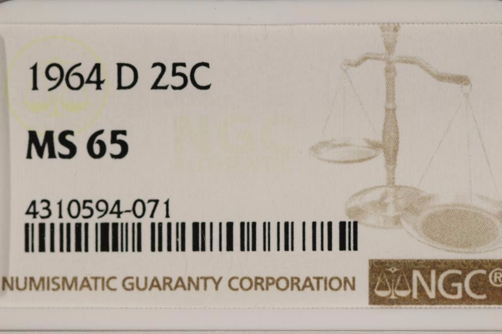 1964-D WASHINGTON SILVER QUARTER NGC MS65