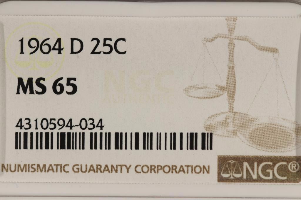 1964-D WASHINGTON SILVER QUARTER NGC MS65