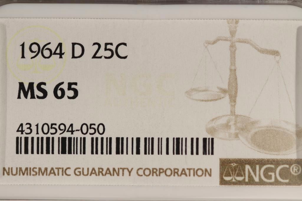 1964-D WASHINGTON SILVER QUARTER NGC MS65