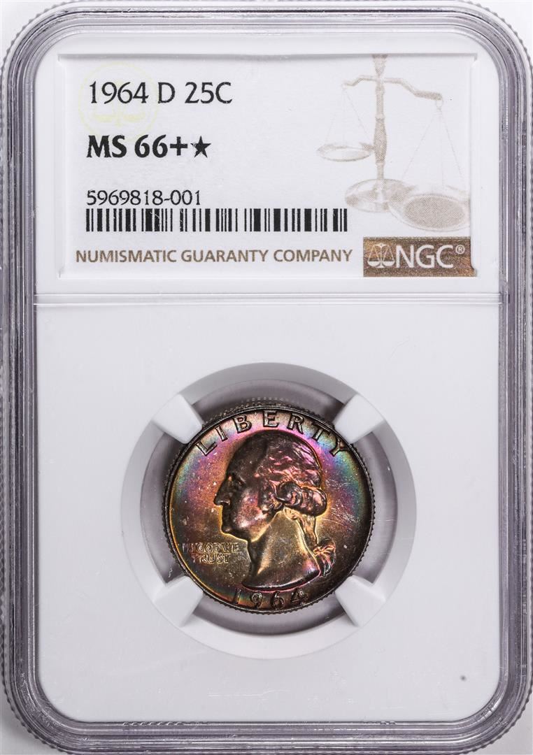 1964-D Washington Quarter Coin NGC MS66+* Plus Star Amazing Toning