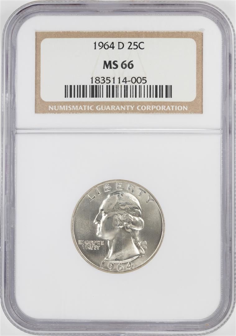 One 1964-D Washington Quarter Coin NGC MS66. NGC Certified.