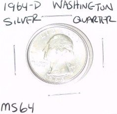 1964-D Washington SILVER Quarter *RARE MS-64 HIGH GRADE - NICE COIN*!! ***Coin & Currency Grades, Conditions and Values are not Northern Colorado Estate Liquidators Responsibilty. Grades, Condition and Values are determined by Consigner(s) & Buyers ONLY***