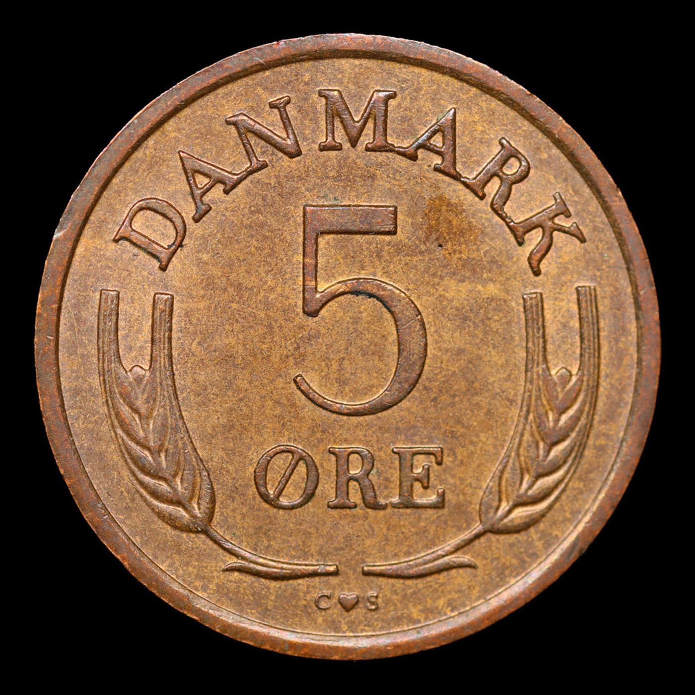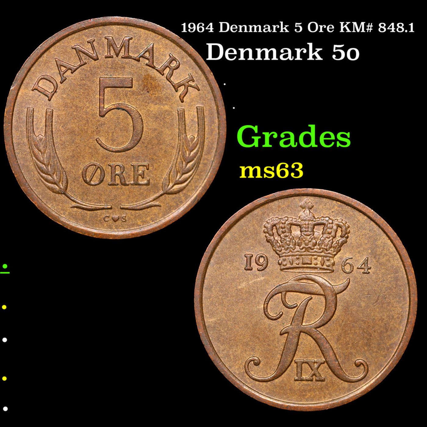 1964 Denmark 5 Ore KM# 848.1 Grades Select Unc.
