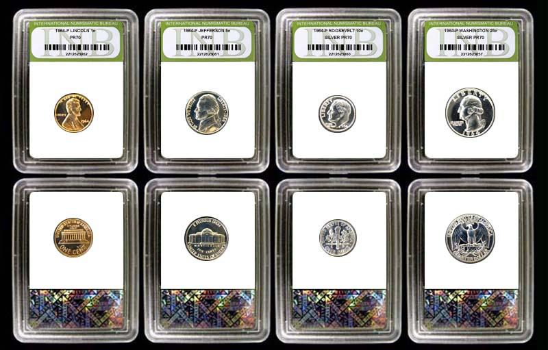 1964 FOUR COIN PROOF SET. INB CERTIFIED - HIGH GRADE