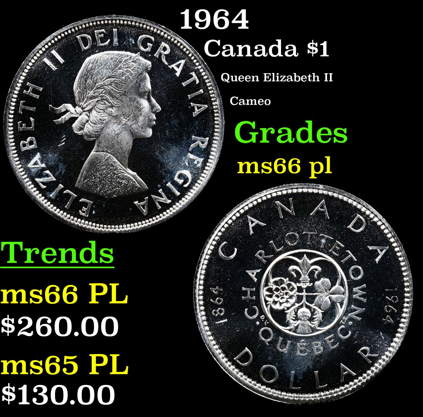 1964 Grades GEM+ UNC PL. Elizabeth was born in Mayfair, London, as the first child of the Duke and Duchess of York (later King George VI and Queen Elizabeth). Her father acceded to the throne in 1936 upon the abdication of his brother, King Edward VIII, making Elizabeth the heir presumptive. She was educated privately at home and began to undertake public duties during the Second World War, serving in the Auxiliary Territorial Service. In November 1947, she married Philip Mountbatten, a former prince of Greece and Denmark, and their marriage lasted 73 years until Philip's death in 2021. They had four children: Charles, Prince of Wales; Anne, Princess Royal; Prince Andrew, Duke of York; and Prince Edward, Earl of Wessex.When her father died in February 1952, Elizabeth—then 25 years old—became queen regnant of seven independent Commonwealth countries: the United Kingdom, Canada, Australia, New Zealand, South Africa, Pakistan, and Ceylon, as well as Head of the Commonwealth. Elizabeth has reigned as a constitutional monarch through major political changes such as the Troubles in Northern Ireland, devolution in the United Kingdom, the decolonisation of Africa, and the United Kingdom's accession to the European Communities and withdrawal from the European Union. The number of her realms has varied over time as territories have gained independence, and as some realms have become republics. Her many historic visits and meetings include state visits to the People's Republic of China in 1986, the Russian Federation in 1994, the Republic of Ireland in 2011, and visits to or from five popes.Significant events have included Elizabeth's coronation in 1953 and the celebrations of her Silver, Golden, Diamond and Platinum jubilees in 1977, 2002, 2012, and 2022, respectively. Elizabeth is the longest-lived and longest-reigning British monarch, the oldest and longest-serving incumbent head of state, and the second-longest reigning sovereign monarch in world history. She has faced occasional republican sentiment and press criticism of the royal family, particularly after the breakdown of her children's marriages, her annus horribilis in 1992, and the death in 1997 of her former daughter-in-law Diana, Princess of Wales. However, support for the monarchy in the United Kingdom has been and remains high, as does her personal popularity. Elizabeth died aged 96 at Balmoral Castle, Aberdeenshire, and was succeeded by her eldest son, Charles III.