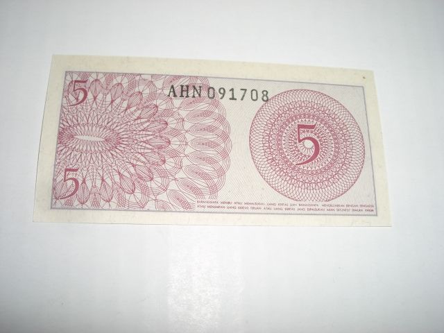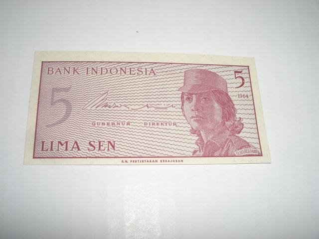 1964 INDONESIA 5 SEN NOTE *EXTREMELY RARE UNC HIGH GRADE*!! ***Coin, Currency & All Items Listed in this auction - Grades, Conditions and Values are not Safe Deposit Coins LLC Responsibilty. Grades, Condition and Values are determined by Consigner(s) & Buyers ONLY***
