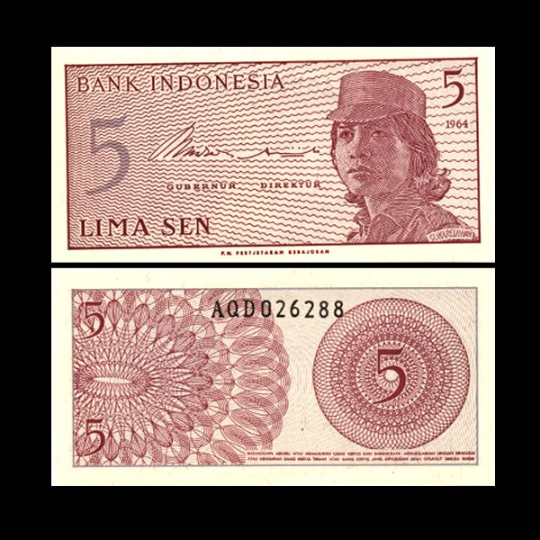 1964 Indonesia 5 Sen Note Crisp Unc (CUR-006756)