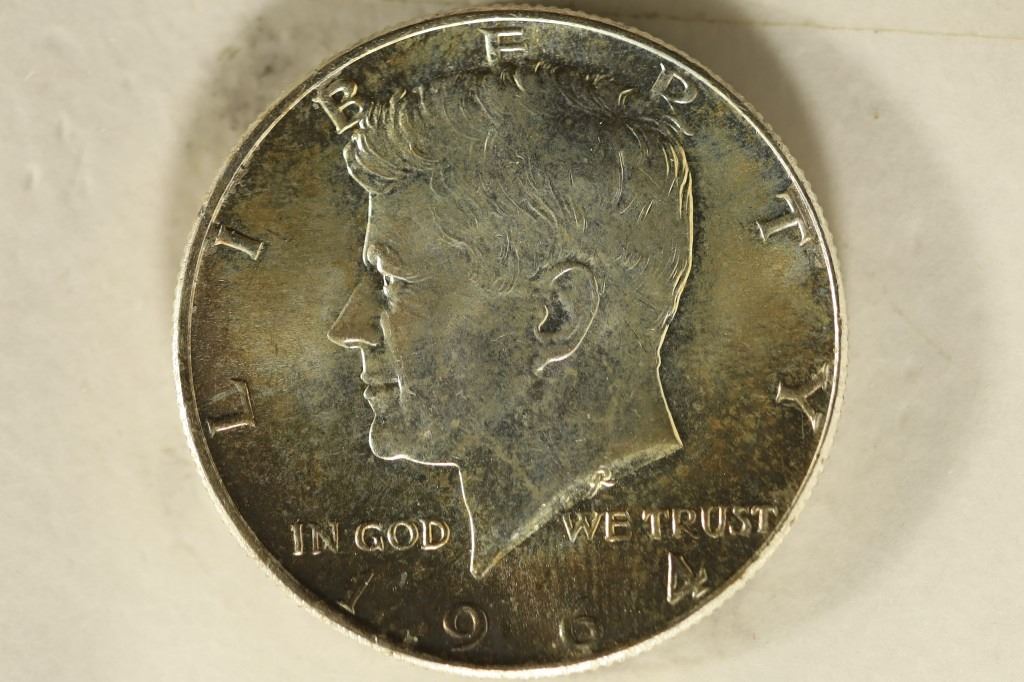 1964 JFK 90% SILVER UNC HALF DOLLAR. WITH TONING