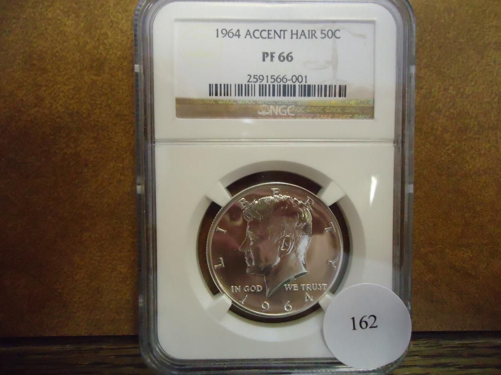 1964 KENNEDY HALF DOLLAR ACCENT HAIR NGC PF66