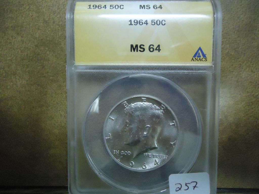 1964 KENNEDY HALF DOLLAR ANACS MS64