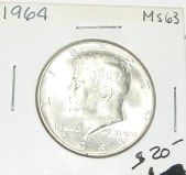 1964 KENNEDY SILVER HALF DOLLAR RED BOOK VALUE IS $20.00 *RARE MS-63 HIGH GRADE* COIN CAME OUT OF SAFE!! ***Coin, Currency & All Items Listed in this auction - Grades, Conditions and Values are not Safe Deposit Coins LLC Responsibilty. Grades, Condition and Values are determined by Consigner(s) & Buyers ONLY