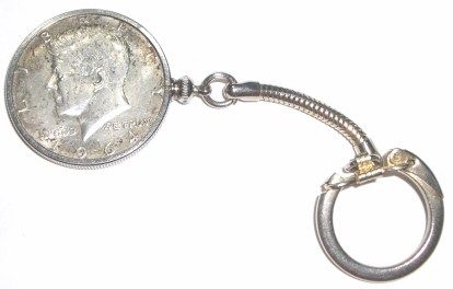 1964 KENNEDY SILVER HALF DOLLAR SET IN BEZEL KEY CHAIN *CURRENT SILVER PRICE IS $34.65 PER oz*!! ***Coin, Currency & All Items Listed in this auction - Grades, Conditions and Values are not Safe Deposit Coins LLC Responsibilty. Grades, Condition and Values are determined by Consigner(s) & Buyers ONLY***