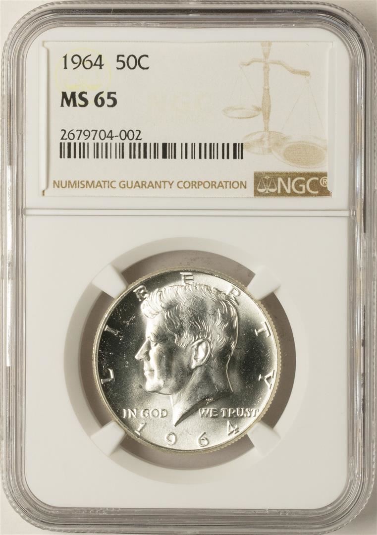 One 1964 Kennedy Half Dollar Coin NGC MS65. NGC Certified.
