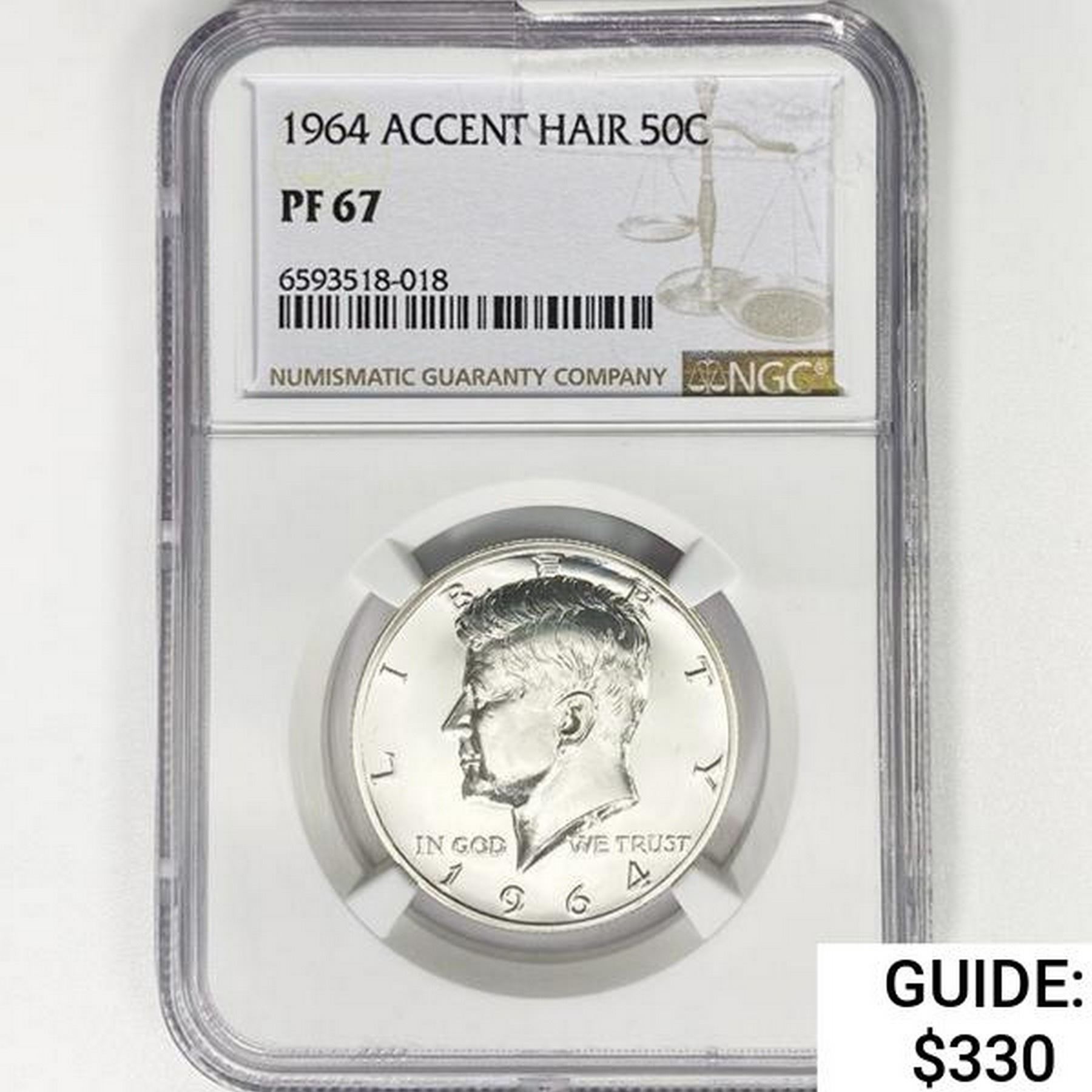 1964 Kennedy Half Dollar NGC PF67 Accent Hair