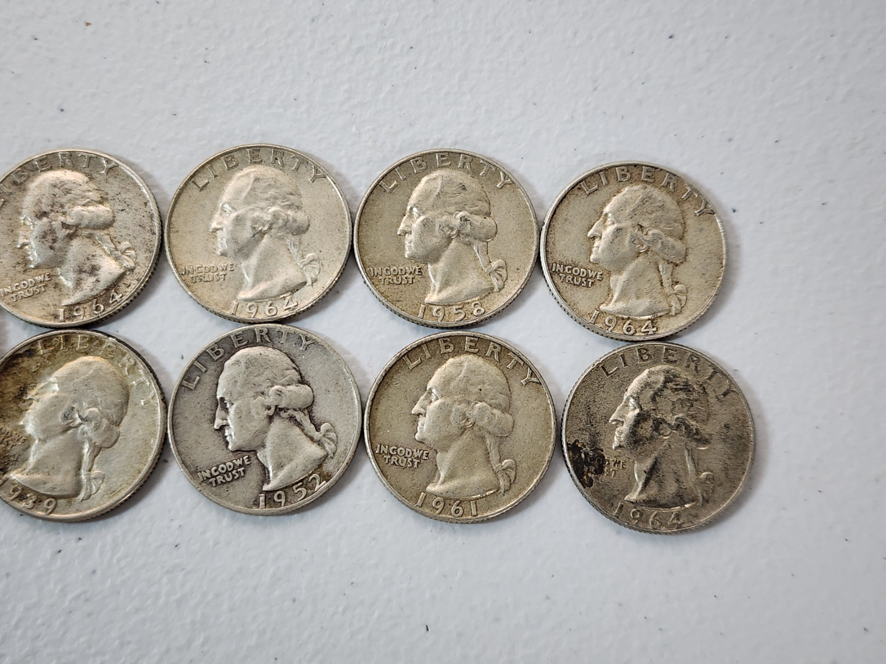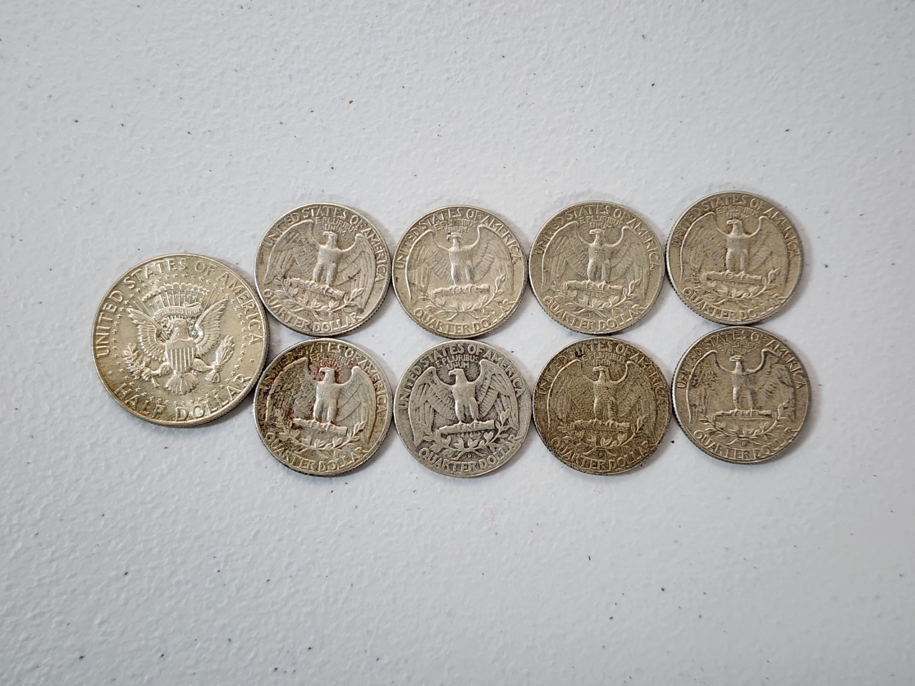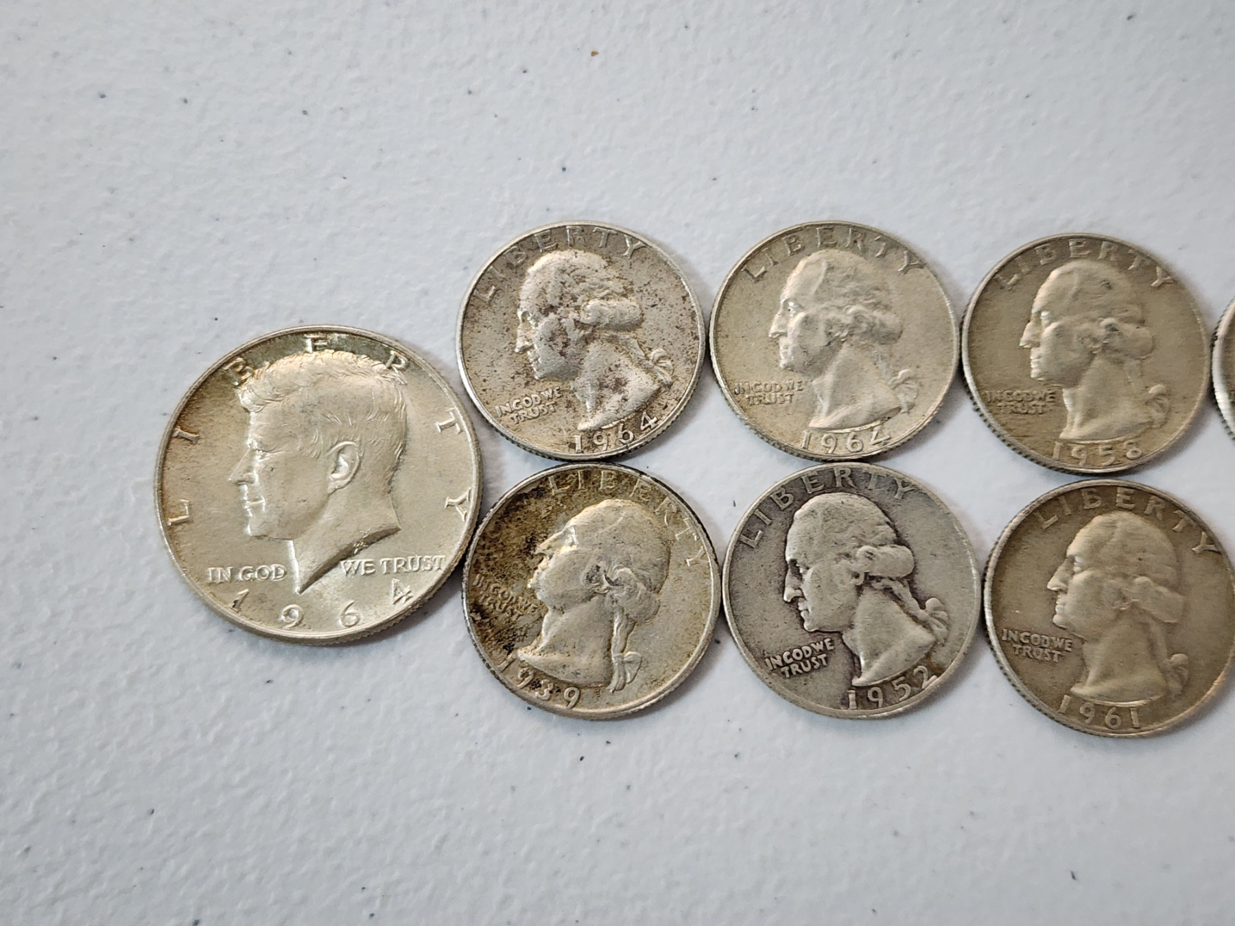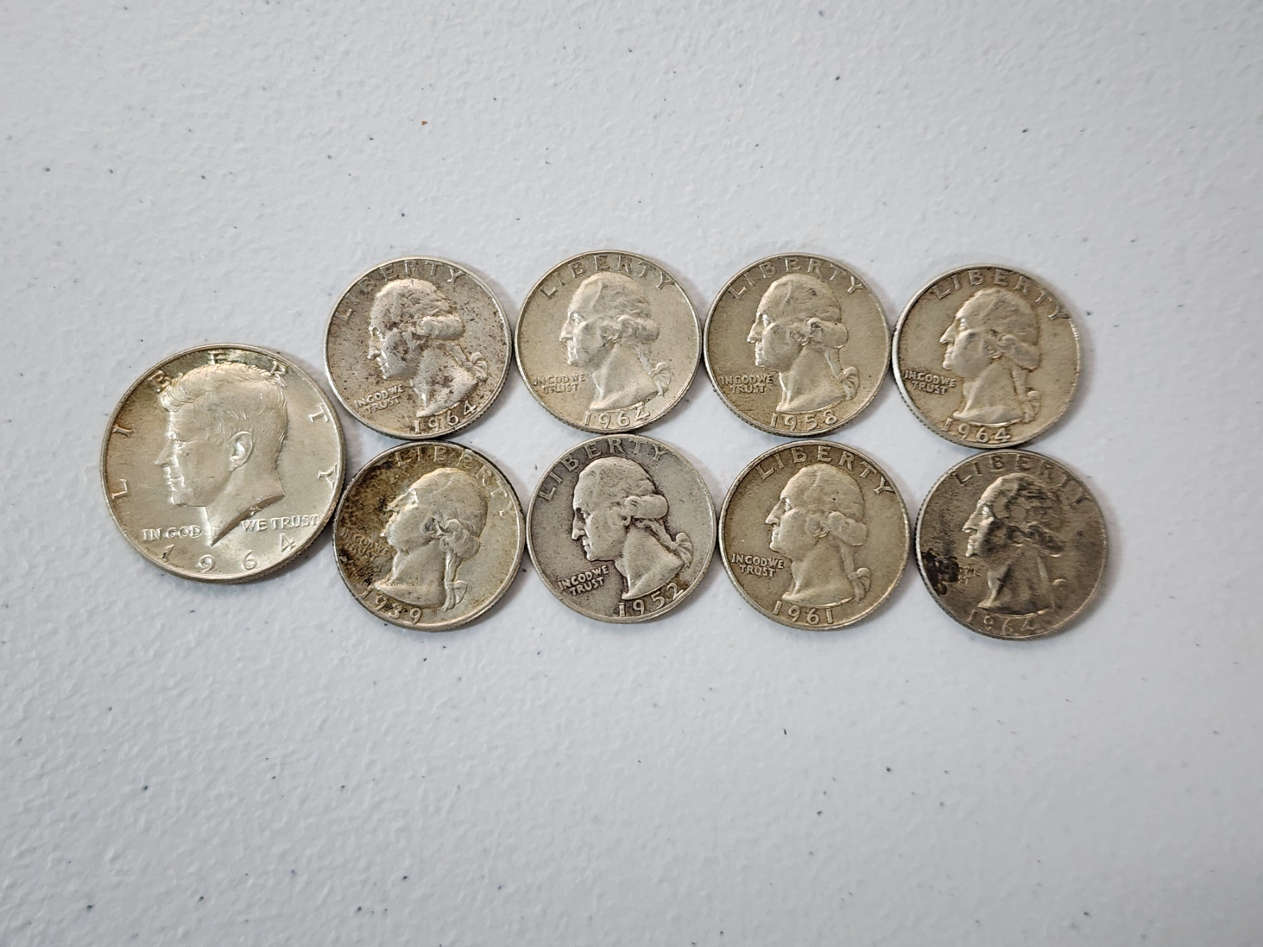 1964 Kennedy Silver Half Dollar and Assorted Years Silver Washington Quarters FV: $2.50