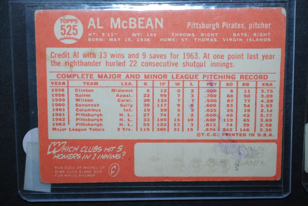 1964 MLB Al McBean Pittsburgh Pirates Baseball Trading Card; EST. $5-10