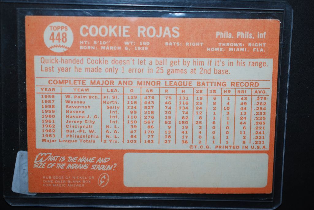 1964 MLB Cookie Rojas Philadelphia Phillies Baseball Trading Card; EST. $5-10