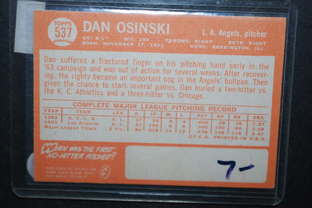 1964 MLB Dan Osinski Los Angeles Angels Baseball Trading Card; EST. $5-10